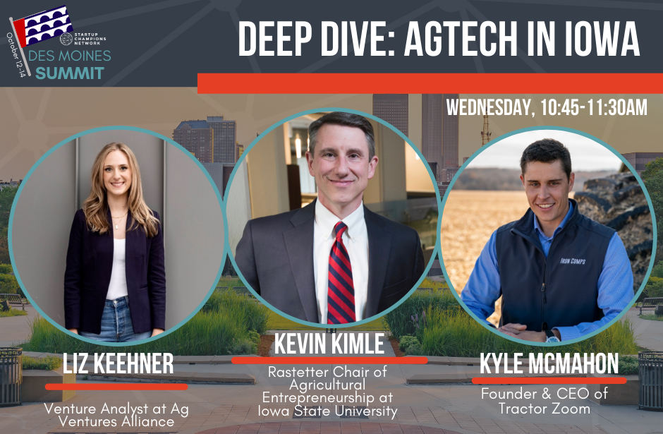 Iowa State University, the premier research university in Central Iowa, plays a major role in moving the entire community forward with an institution-wide focus on entrepreneurship and innovation. One place that is particularly visible and well developed is in the AgTech ecosystem. On Wednesday, we will hear from the chair of the Agricultural Entrepreneurship Initiative at Iowa State, a farmer cooperative focused on investing in early-stage companies and the CEO of one of the fastest growing AgTech startups in the state. Together they will share ideas and strategies for pushing the industry forward.