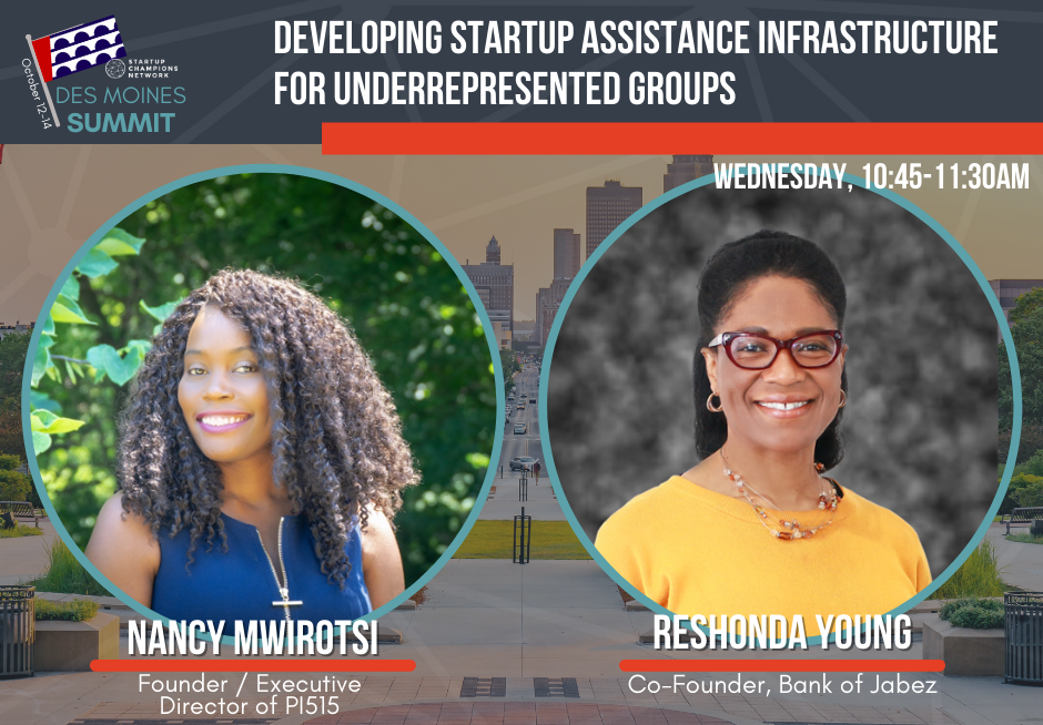 Geoff also notes the differences between Des Moines being a city that wants to see progress and growth, versus rural Iowa where there can be pullback when it comes to change. All of this is of course exacerbated by politics and labels. If the state wants to see growth and business vibrancy, policies and legislation need to be put in place so that everyone feels welcome and has the tools to succeed. Creating an equitable entrepreneurial ecosystem is a goal for many players in the ecosystem. We will hear from two: Nancy Mwirotsi and ReShonda Young, who run programs for underrepresented entrepreneurs.